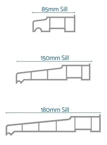 A cill sits underneath the frame and is there to drain rain water away. If you have an existing Cill this would normally be replaced unless its concrete. Ours are 30mm high, and we offer three different sizes: